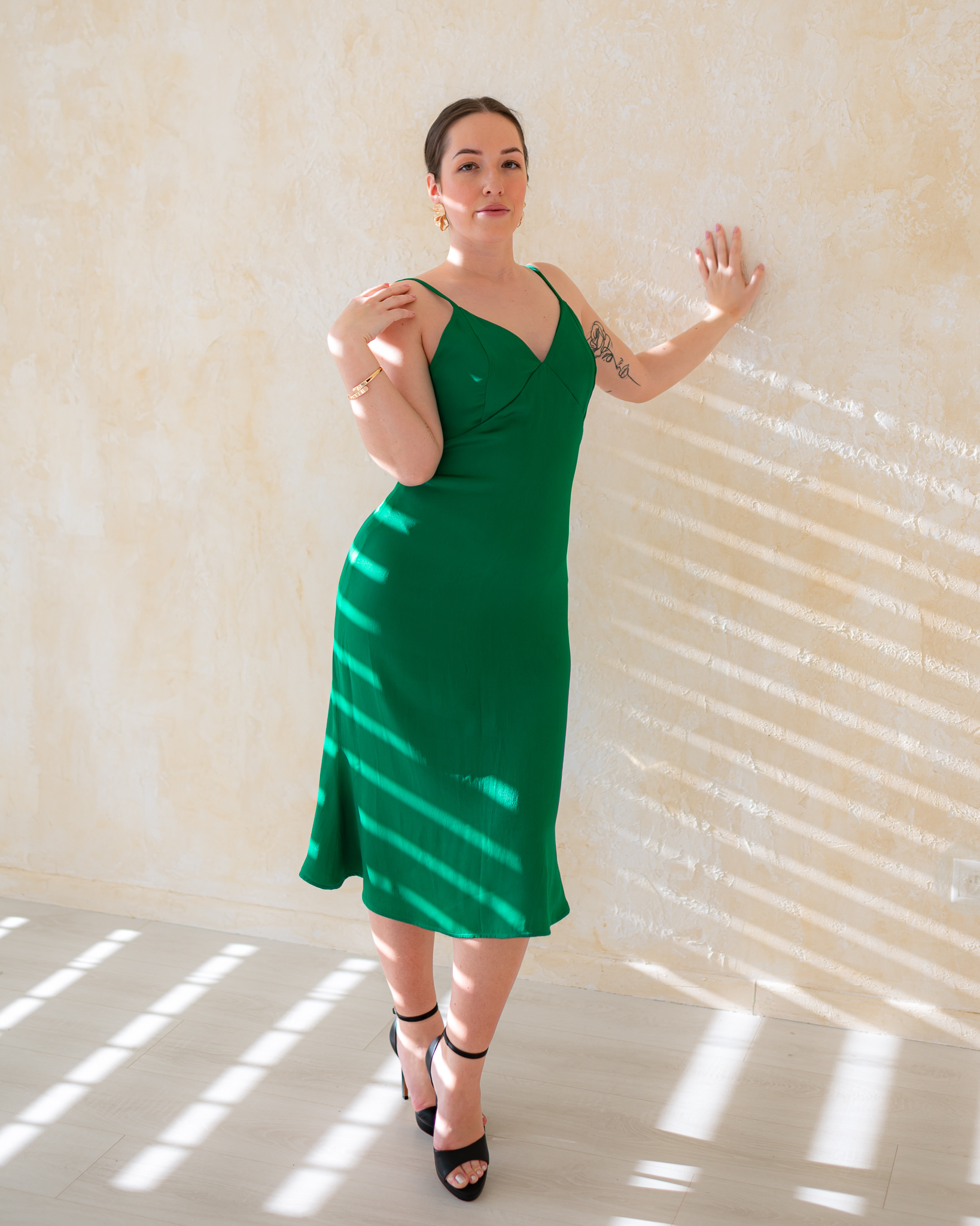 Šaty Paloma sú dôkazom jemnej ženskosti a prirodzenej elegancie. Tento model je stvorený pre romantickú, zmyselnú ženu, ktorá sa nebojí jemnej odvahy a sofistikovaného štýlu. Ľahké saténové midi šaty na tenké posuvné ramienka zaujmú výrazným dekoltom a krásne odhaleným chrbtom.